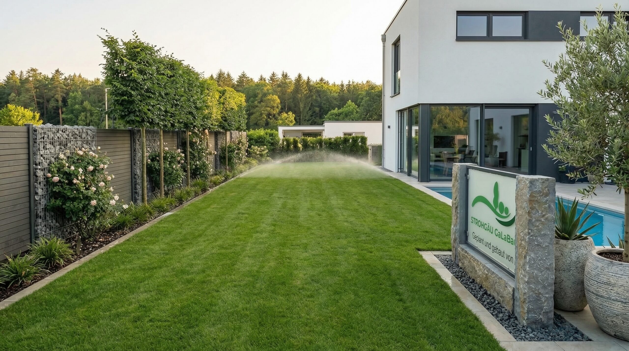 Darüber hinaus wurden neue Rasenflächen angelegt und durch eine ausgewählte Bepflanzung ergänzt, die dem Garten Struktur und natürliche Akzente verleiht. Hochwertige Materialien und eine zeitlose Gestaltung sorgen dafür, dass sich der Garten harmonisch in die Architektur des Neubaus einfügt.
